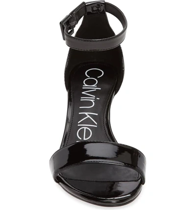 Calvin Klein Carrie Ankle Strap Sandal In Black Patent Leather