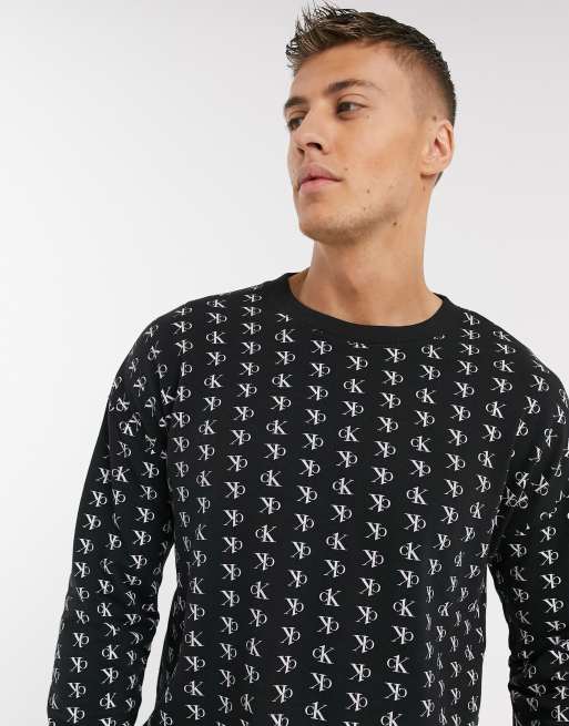 Calvin Klein Men s Long Sleeve Front Logo and All Over CK Print