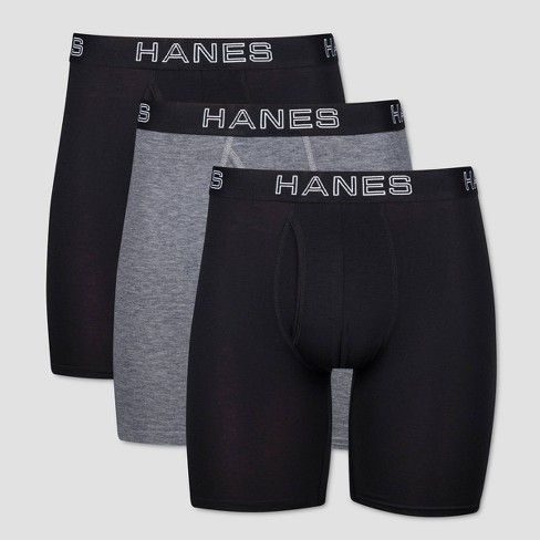Hanes Premium Men s Long Leg Boxer Briefs with Anti Chafing Total Support Pouch 3pk Black Gray S