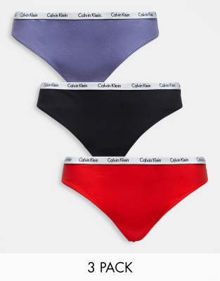Calvin Klein Plus 3 Pack Thong In Terracotta Lilac And Black multi