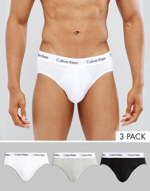 Calvin Klein 3 pack briefs in black white and gray ASOS