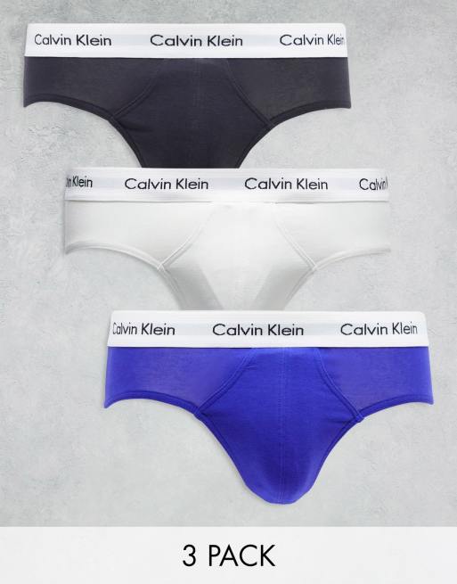 Calvin Klein 3 pack briefs in blue gray and off white ASOS