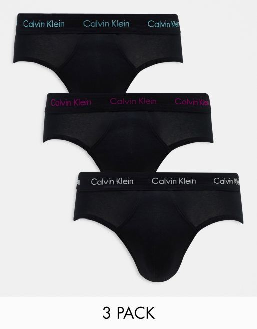 Calvin Klein 3 pack briefs with colored logo waistbands in black