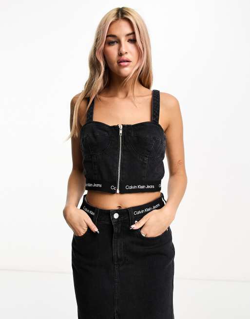 Calvin Klein Jeans logo tape bustier top in black exclusive to