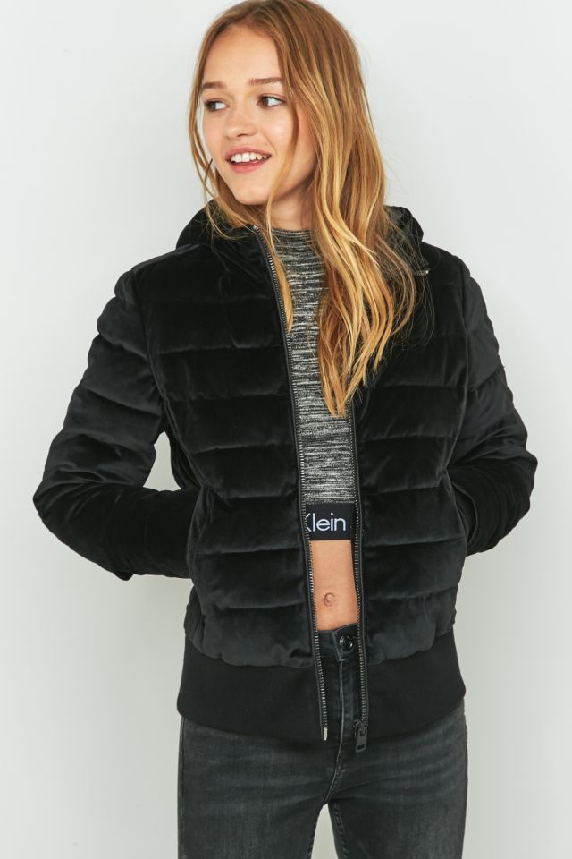 Urban outfitters velvet clearance calvin klein, Calvin Klein Black Velvet Puffer Jacket clearance