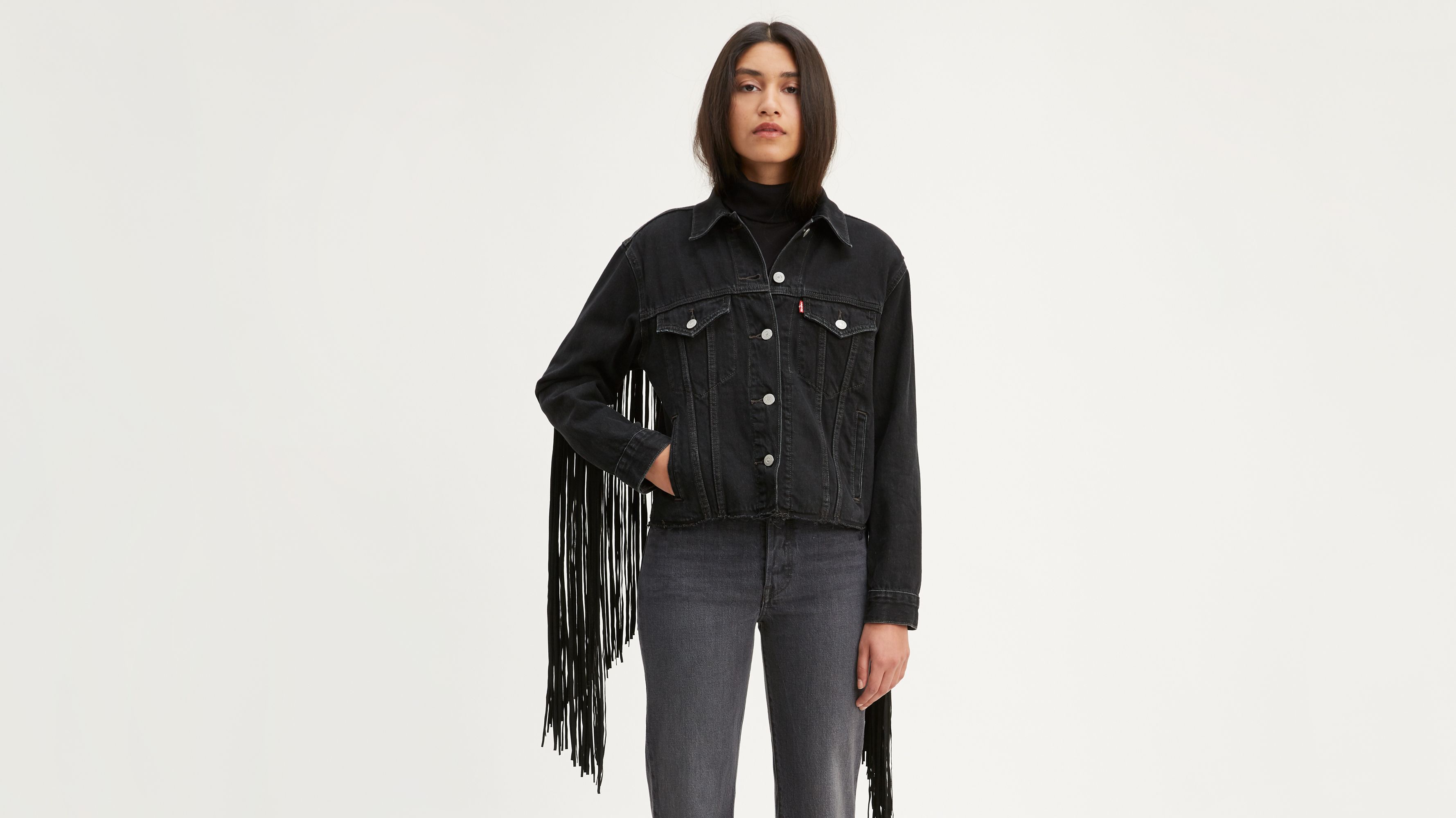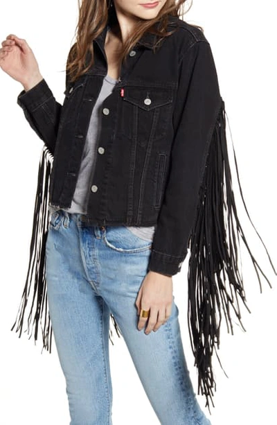 Levi s Ex Boyfriend Fringe Trucker Jacket Black Garmentory