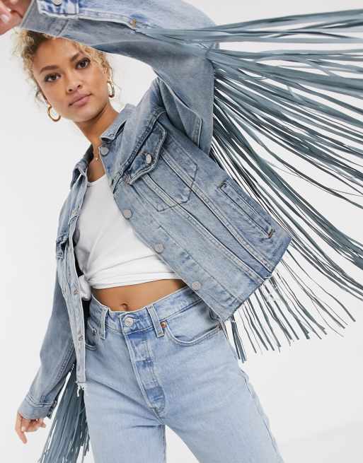 Ex boyfriend Fringe Trucker Jacket Light Wash Levi s US