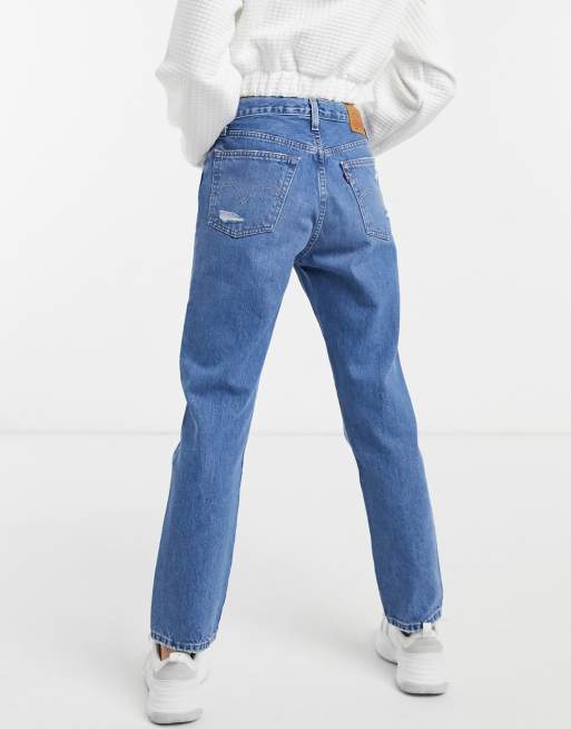 Levi s 501 high rise straight leg crop jeans in mid wash blue ASOS