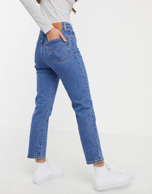 Levi s 501 high rise straight leg crop jeans in mid wash blue ASOS