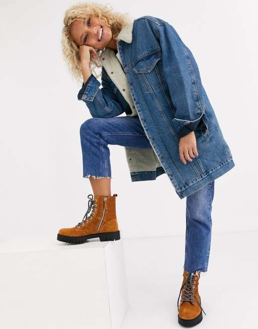 Levi's longline sherpa denim jacket clearance in blue