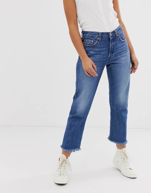 Levi s 501 crop jeans with frayed hem in midwash blue