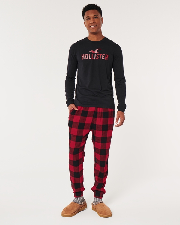 Hollister Men s Flannel Joggers Navy White Bird Logo Sleep Pajamas