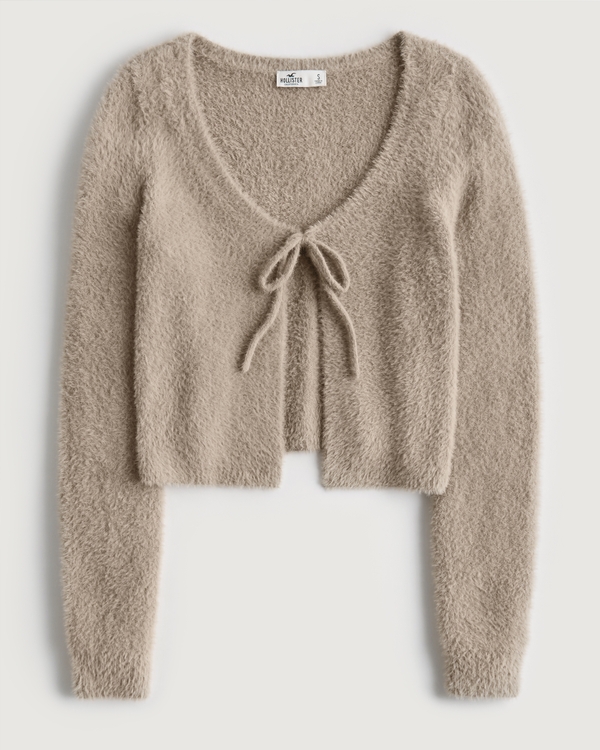 Women s Cozy Tie Front Crop Cardigan Women s Clearance