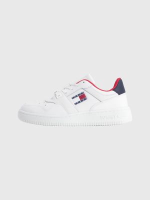 Tommy hilfiger white tj clearance low cut sneaker trainers, Flag Accent Leather Sneaker Tommy Hilfiger USA clearance