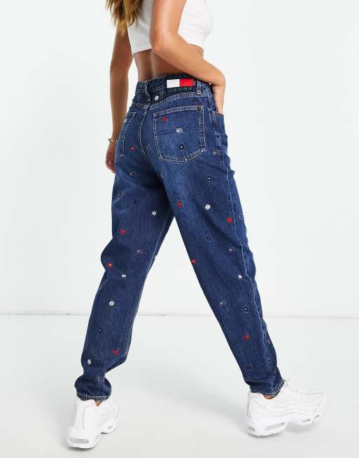 Mom jean tommy clearance hilfiger, Tommy Hilfiger Mom Ultra High Rise Tapered Heart Embroidery Jeans clearance