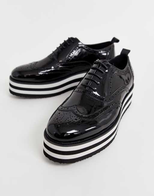 ASOS DESIGN lace up shoes in black patent upper with striped