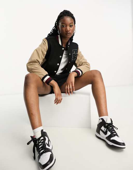Bombers tommy clearance, Tommy Hilfiger x Shawn Mendes varsity logo bomber jacket in multi clearance