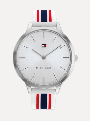 Slim Watch with White Dial and Stripe Silicone Strap Tommy Hilfiger