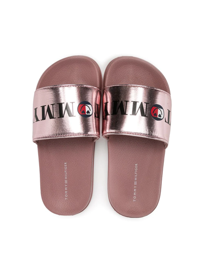 Tommy Hilfiger Junior Kids Smile print Metallic Pool Sliders In