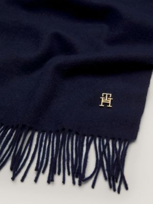 Tommy clearance jeans scarf, Chic Wool TH Monogram Scarf Blue Tommy Hilfiger clearance