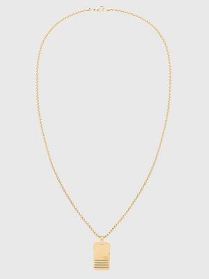 Gold Tone Stripe Dog Tag Necklace Tommy Hilfiger