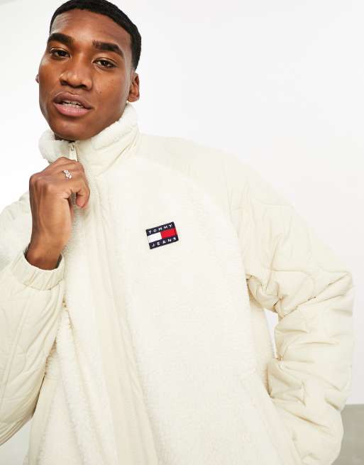 Tommy Jeans mixed media sherpa fleece in white ASOS