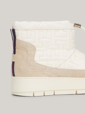 TH Monogram Suede Snow Boots White Tommy Hilfiger