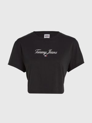 Curve Essential Logo Cropped T Shirt Black Tommy Hilfiger