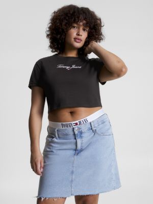 Tommy hilfiger black clearance crop top, Curve Essential Logo Cropped T Shirt Black Tommy Hilfiger clearance