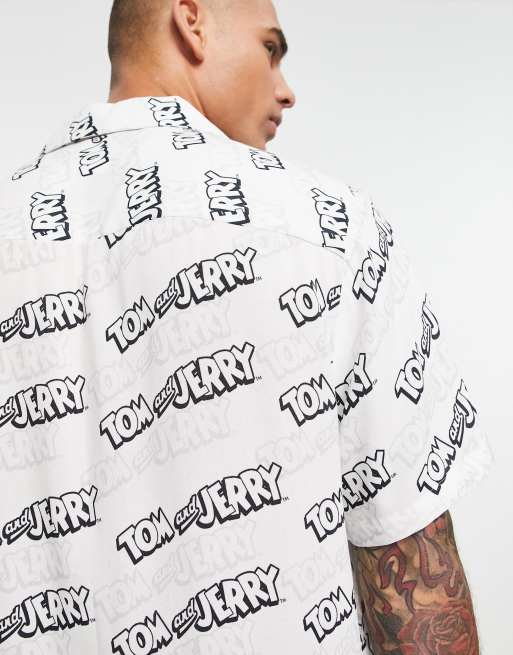 Tom and jerry clearance tommy hilfiger shirt, ASOS DESIGN relaxed revere long shirt in Tom Jerry monogram print clearance