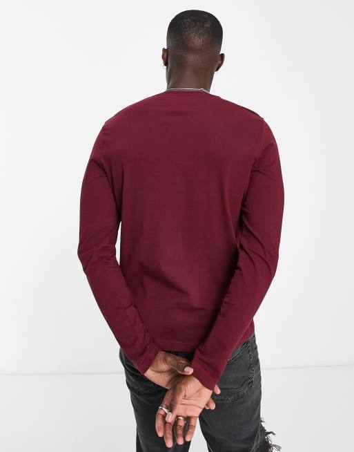 Maroon tommy hilfiger clearance shirt, Tommy Hilfiger flag logo stretch slim fit long sleeve cotton t shirt in burgundy clearance