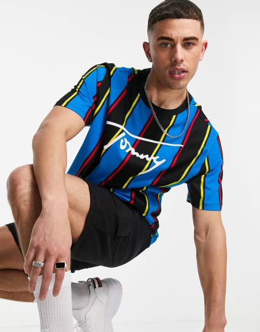 Tommy Hilfiger swim t shirt with chest script logo in blue stripe