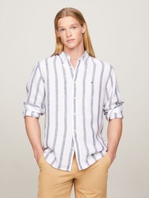 Tommy hilfiger horizontal clearance striped shirt, Linen Triple Stripe Regular Fit Shirt clearance