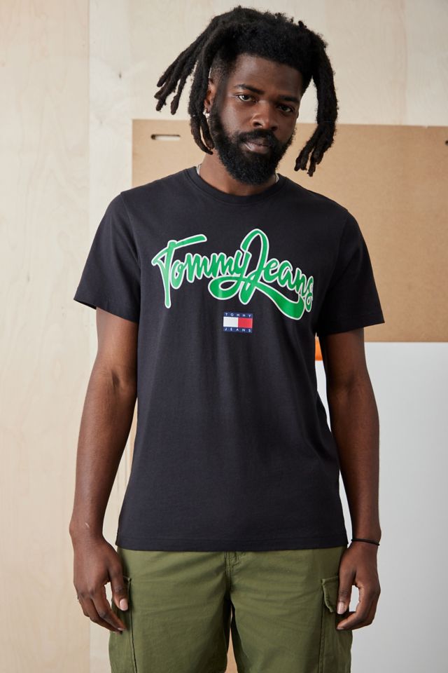 Tommy Jeans Black Collegiate Pop Logo T Shirt Urban Outfitters UK