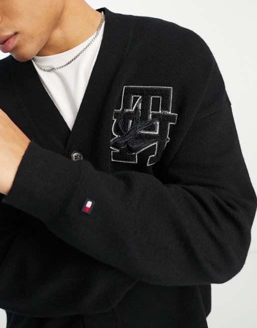 Tommy hilfiger black clearance cardigan, Tommy Hilfiger x Shawn Mendes long sleeve varsity monogram cardigan in black clearance