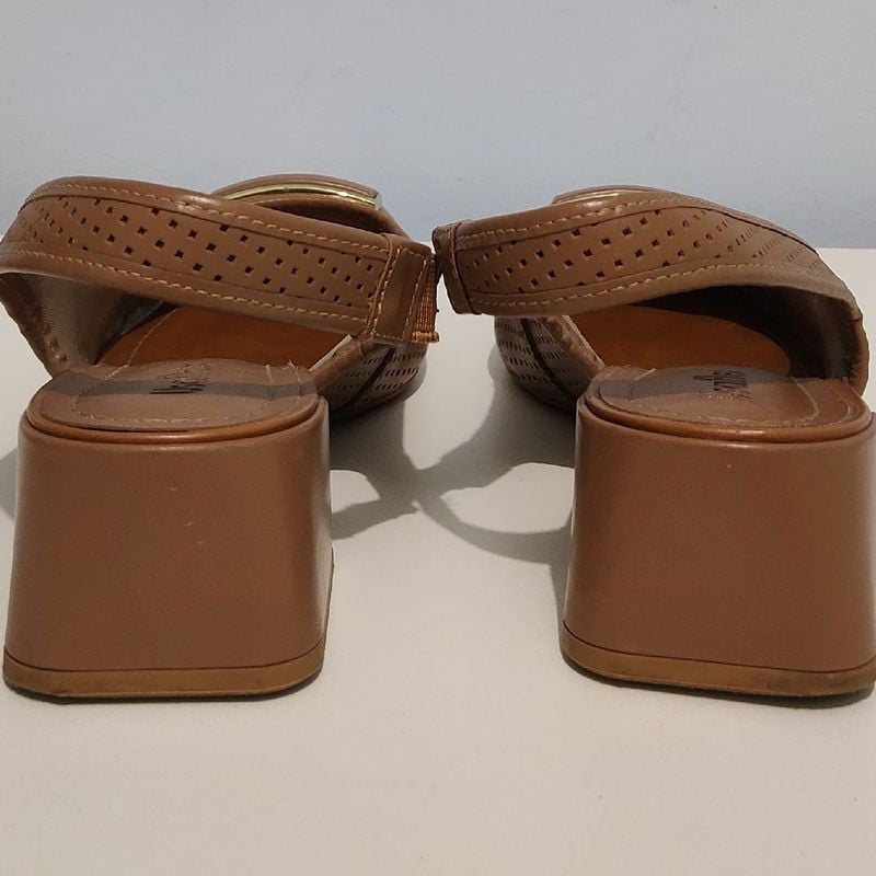 Scarpin Slingback Usaflex Couro Leg timo Salto Bloco Marrom