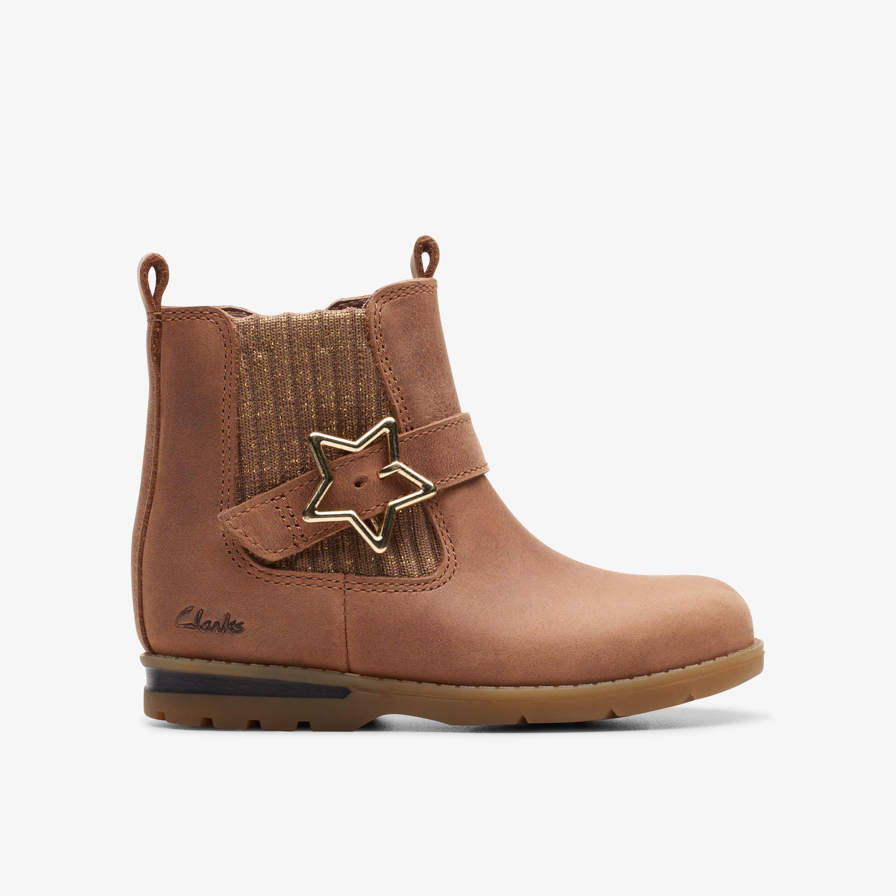 Clarks girls suede clearance boots, Girls Dabi Star Toddler Light Tan Ankle Boots Clarks UK clearance