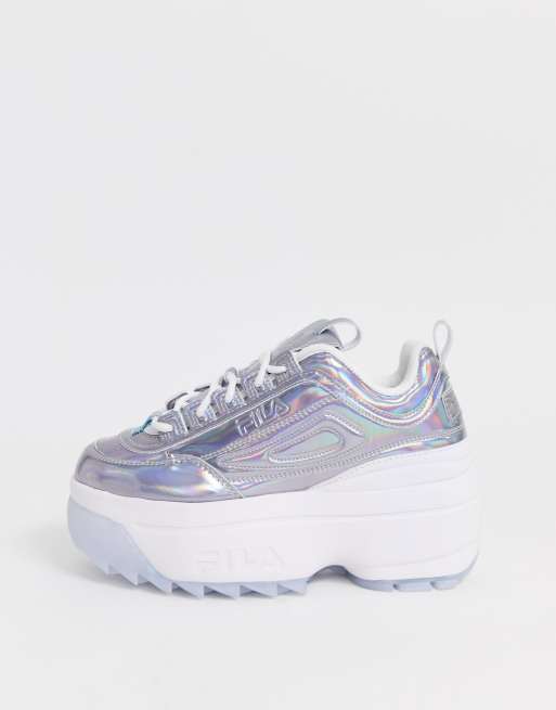 Fila Disruptor II Wedge iridescent trainer in silver