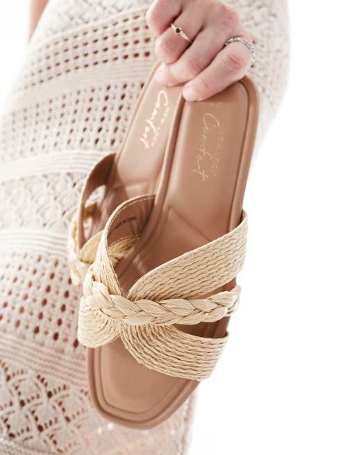 New Look raffia woven mule sandal in off white