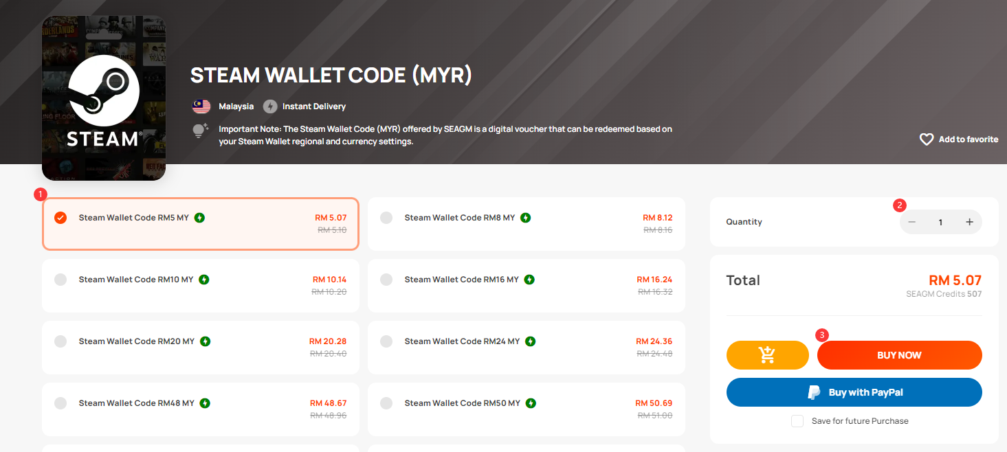 How to purchase Steam Wallet Code from SEAGM SEAGM English