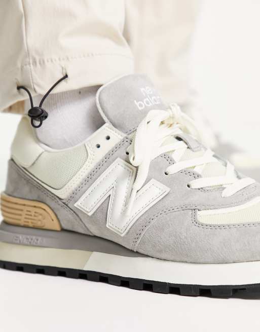 New Balance 574 Premium Sneakers in wit en marineblauw ASOS