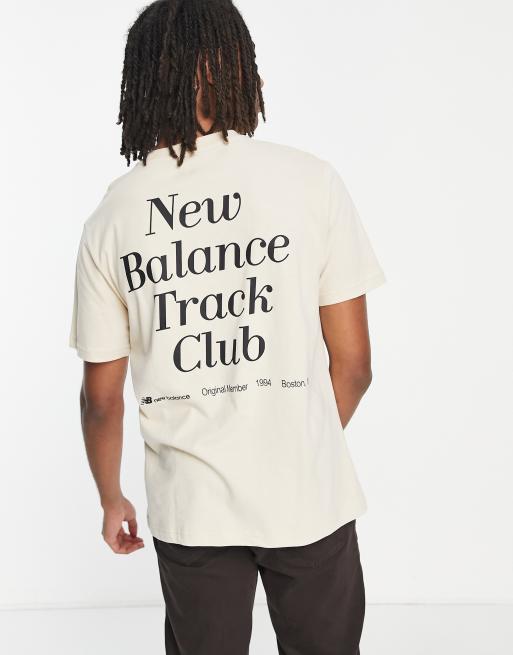 New Balance T shirt met Track Club print op de achterkant lichtbeige