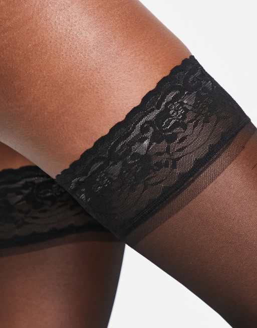 ASOS DESIGN 15 denier kousen met kanten bovenkant in zwart ASOS