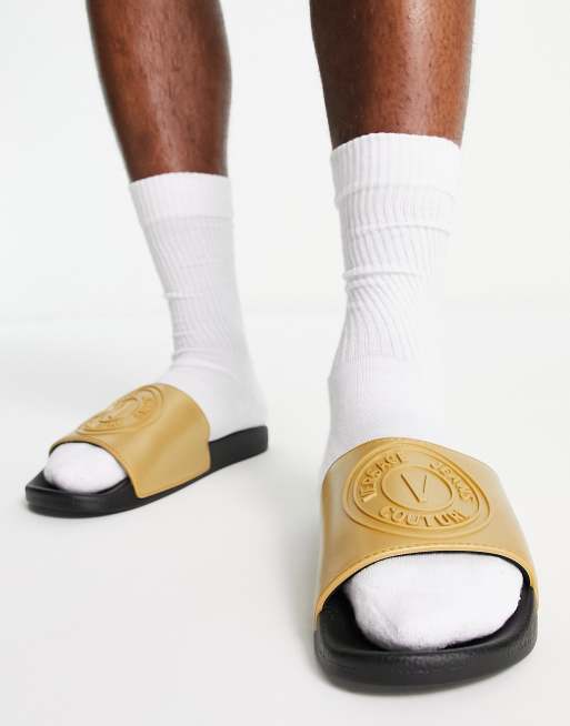 Versace clearance collection slippers, Versace Jeans Couture Slippers met embleem in goud ASOS clearance