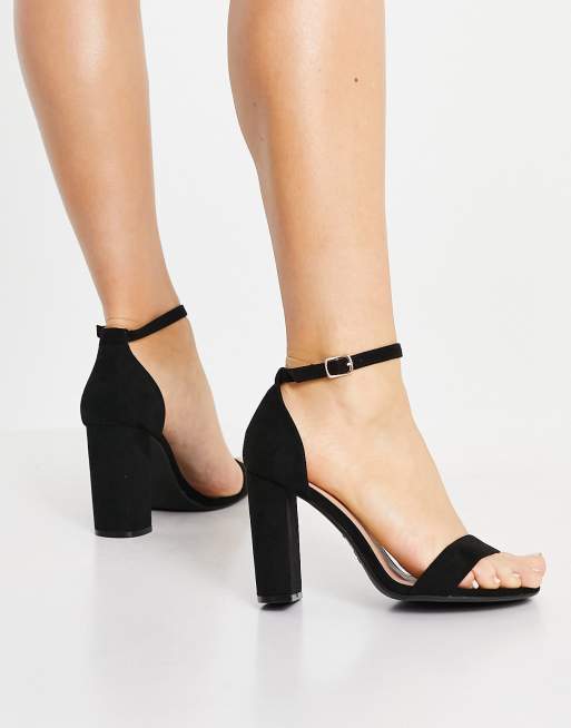 New Look Wide Fit barely there suedette heeled sandal in black ASOS