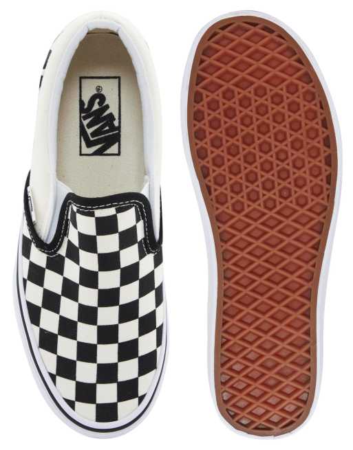 Vans Classic Slip On Cream Black Checkerboard Trainers ASOS