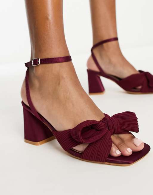 Burgundy sandals clearance, Burgundy Big Bow Sandals Heels Velvet Peep Toe Effortless Dress Shoes clearance