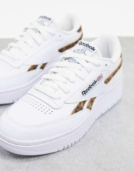 Reebok Classic Club C Double trainers in white with leopard print detail exclusive to ASOS