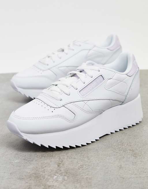 Reebok Classic Leather Double Sneakers met label op de hiel in wit met lila