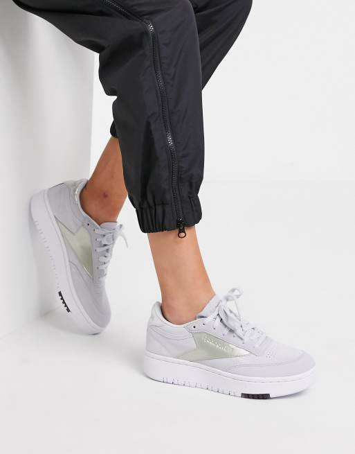 Reebok classic club c clearance double in grey and silver